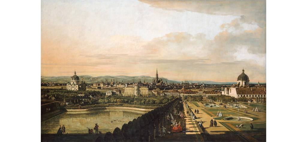 Bernardo Bellotto (Venezia, 30 gennaio 1721 – Varsavia, 17 ottobre 1780), La vista dal Belvedere Superiore, 1760, olio su tela, 135 x 213 cm, Kunsthistorisches Museum Wien, Gemäldegalerie