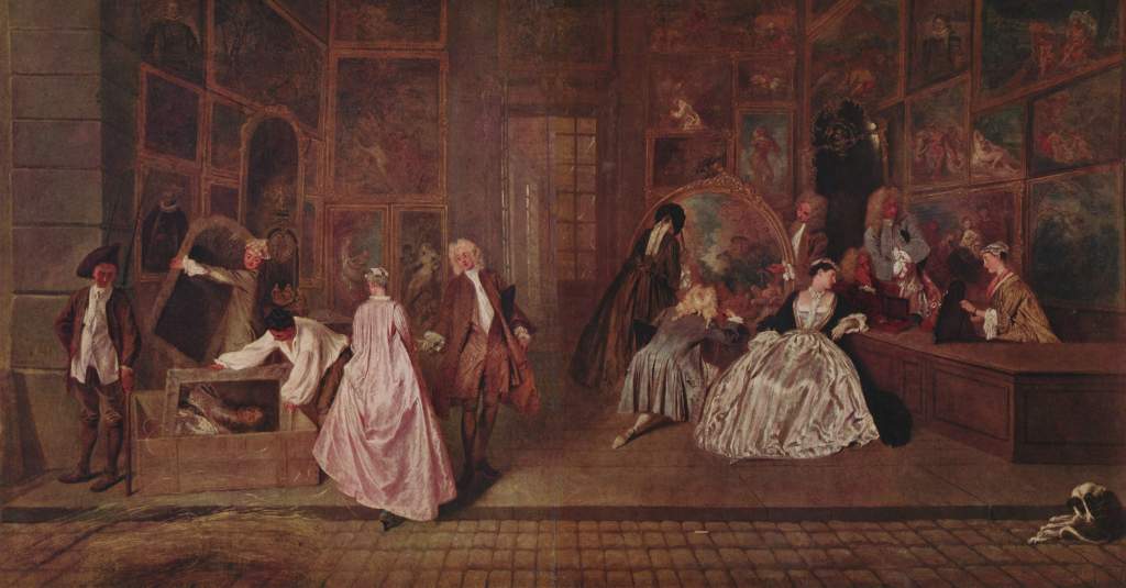 Jean Antoine Watteau (Valenciennes, 10 ottobre 1684 – Nogent-sur-Marne, 18 luglio 1721), L’insegna dell’antiquario Gersaint, 1720, Castello di Charlottenburg, Berlino