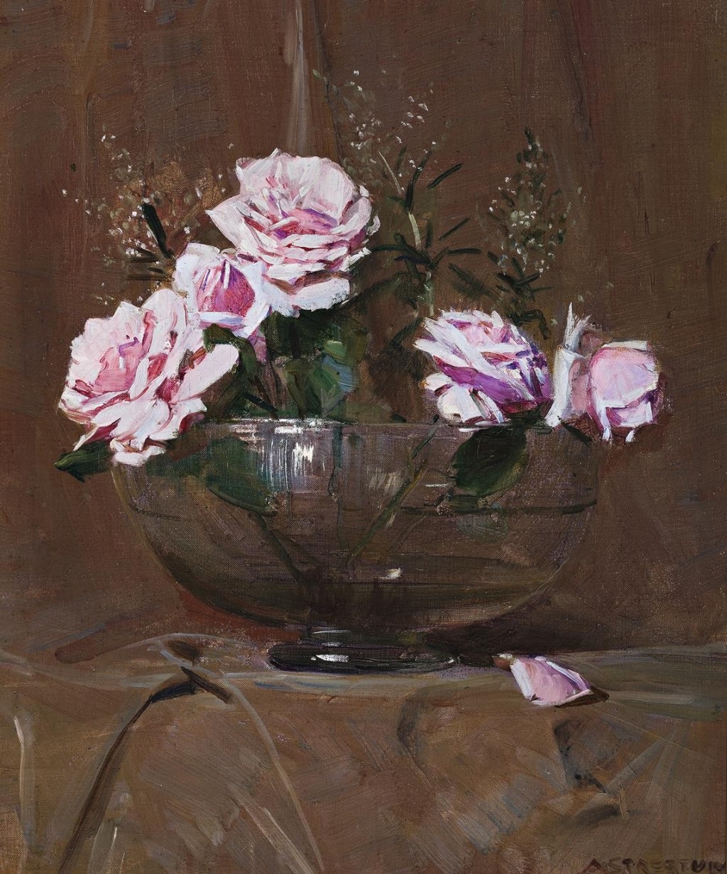 Un vaso di rose del pittore impressionista australiano Sir Arthur Streeton (8 aprile 1867 – 1º settembre 1943), Roses, La France, 1933 c., coll. priv.